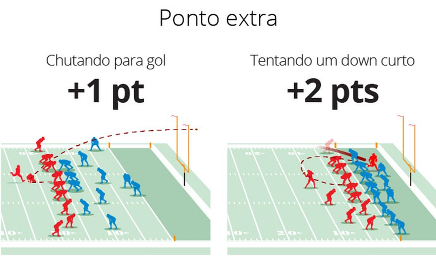 Conversão de 2 Pontos: Tentar uma nova jogada curta para entrar na End Zone novamente (mais difícil).