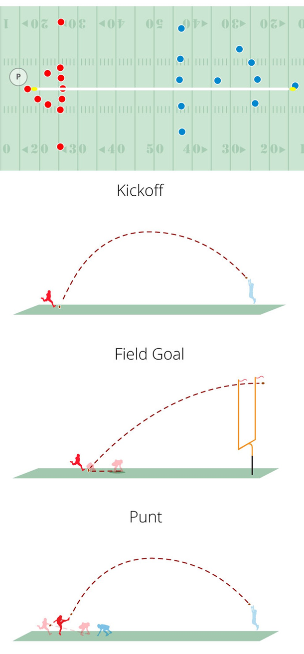 Punt (Chutão): Devolvem a bola para o adversário o mais longe possível.